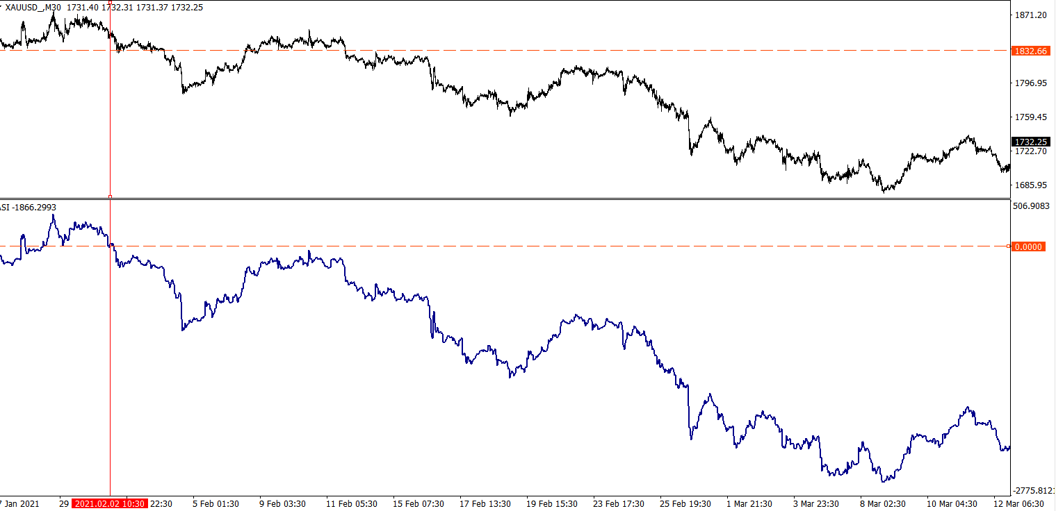 總的來說,ASI指標與蠟燭圖走勢差異性很小,恰恰是這很小的差異性可以幫助投資者判斷突破的真假。儘管出現上述對比的時機很少。